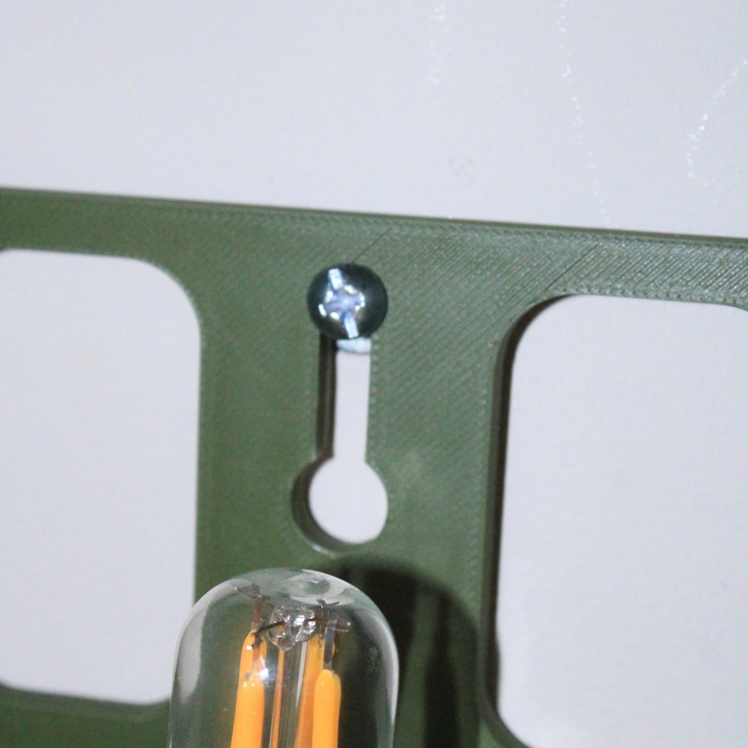 Lampe en PLA de couleur vert kaki, avec un diffuseur translucide en PETG.