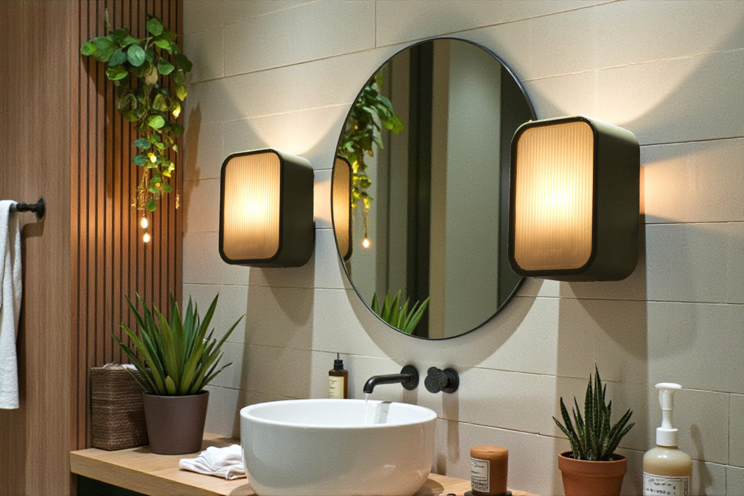 Ces appliques murales au design moderne affichent une forme rectangulaire arrondie avec un cadre vert kaki. Le diffuseur strié vertical diffuse une lumière chaude et douce. Parfaites pour la salle de bain ou la chambre, elles apportent une ambiance élégante et cosy.