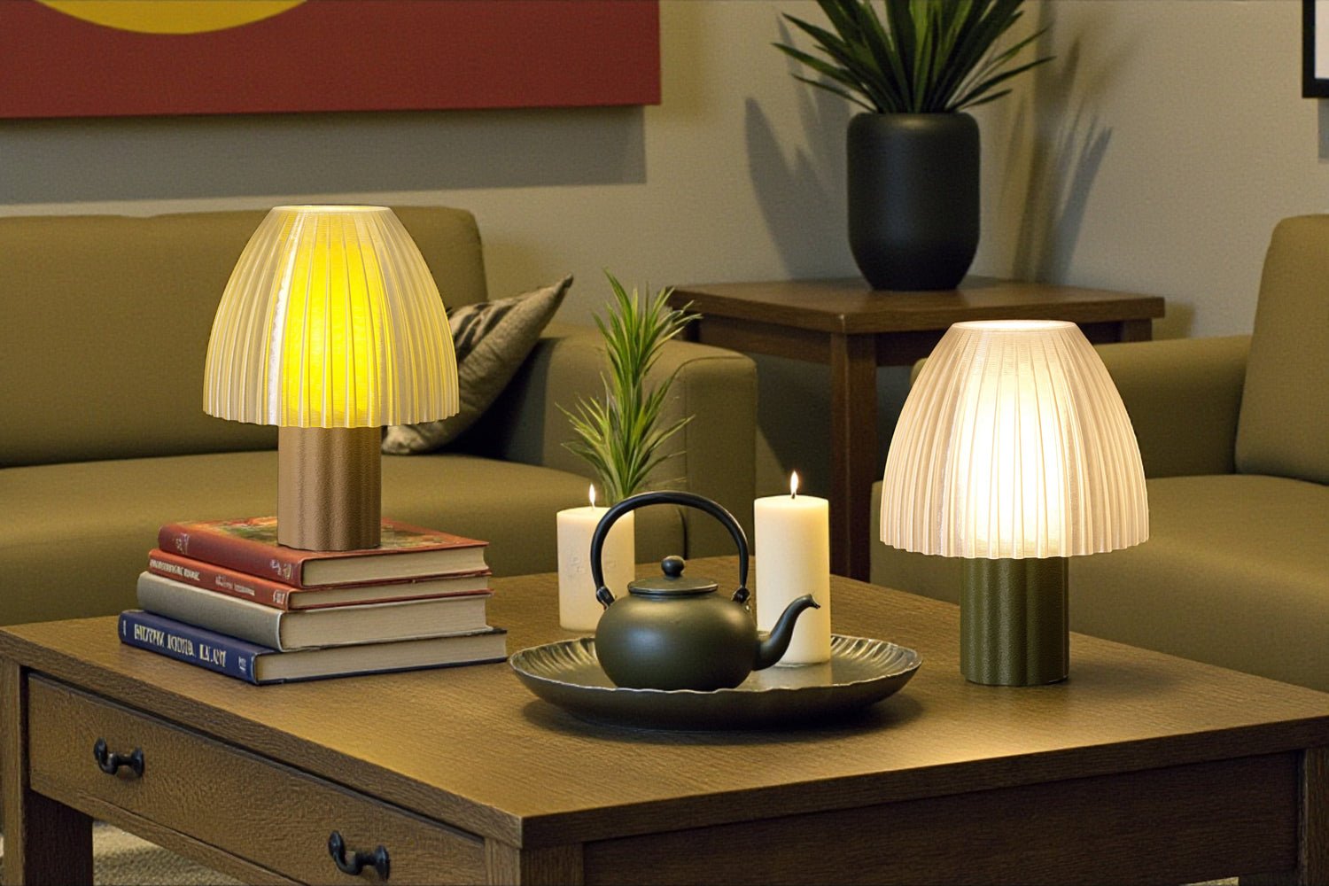 Ajoutez une touche moderne et chaleureuse à votre intérieur avec cette lampe MIRBOLA imprimée en 3D. Inspirée par les lampes champignons iconiques et le style vintage, elle revisite ce classique intemporel avec une touche contemporaine. Son abat-jour translucide diffuse une lumière douce et apaisante, idéale pour créer une ambiance cosy dans votre salon, chambre ou bureau.